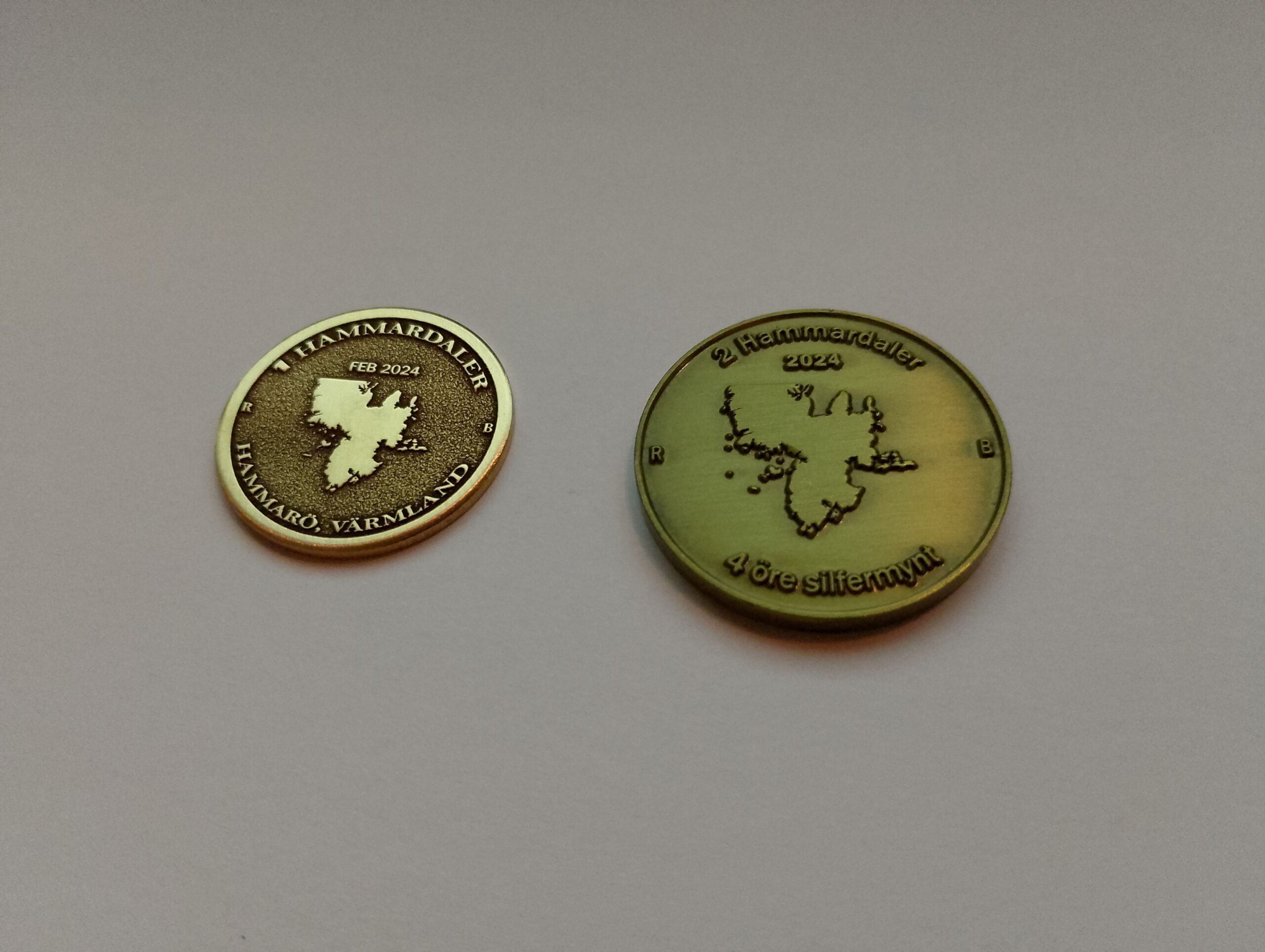 Jag är tillverkaren av Hammardalern, Hammarös samlarmynt. Den finns i 1 Hammardaler (20 kr) och 2 Hammardaler (40 kr), de både säljes och löses in för dessa belopp.