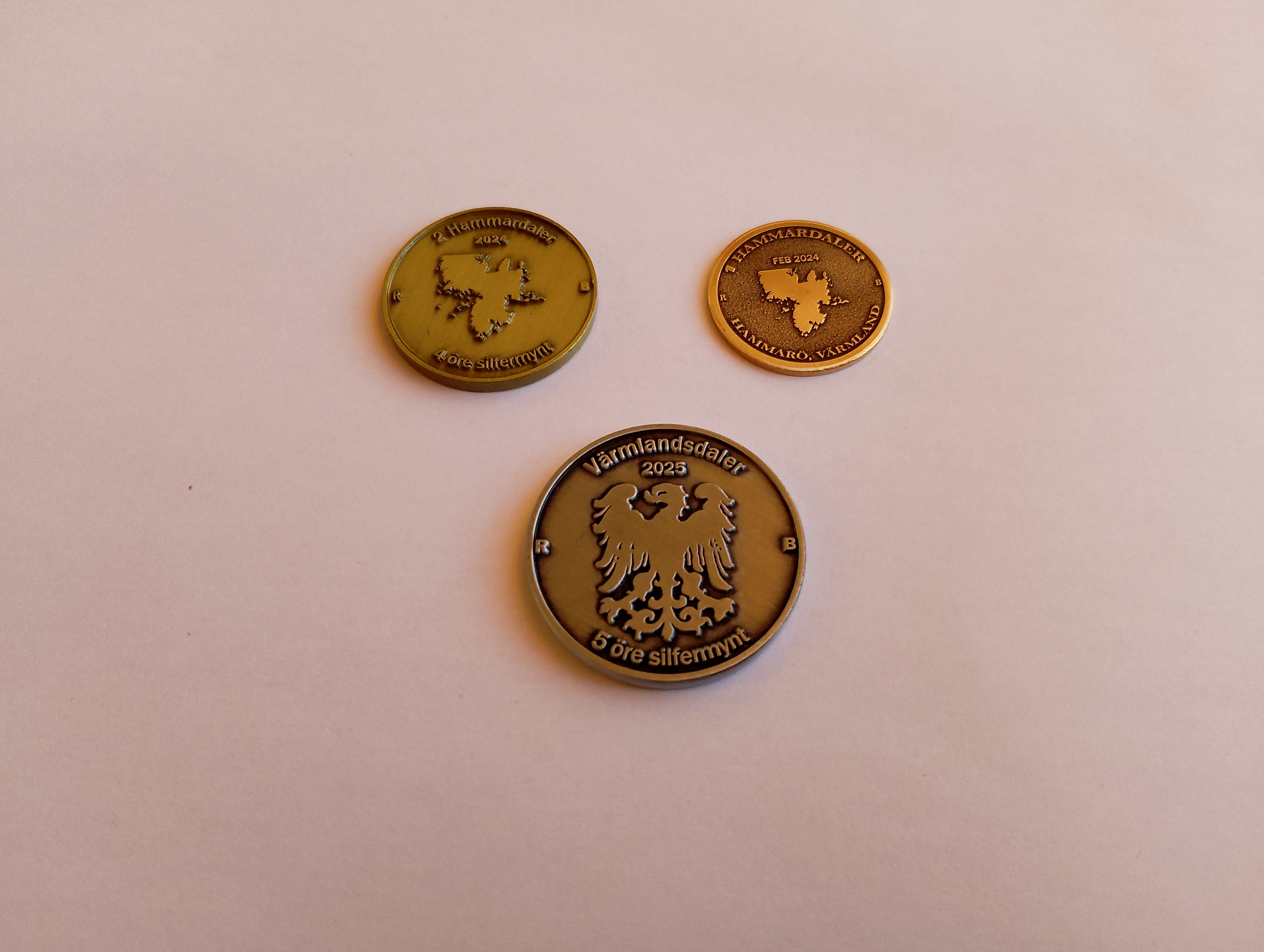 Jag är tillverkare av egenproducerade samlarmynt. Hammardalern och Värmlandsdalern. Hammardalern finns i 1 Hammardaler (20 kr) och 2 Hammardaler (40 kr), de både säljes och löses in för dessa belopp. Värmlandsdalern (50 kr) finns också till försäljning.